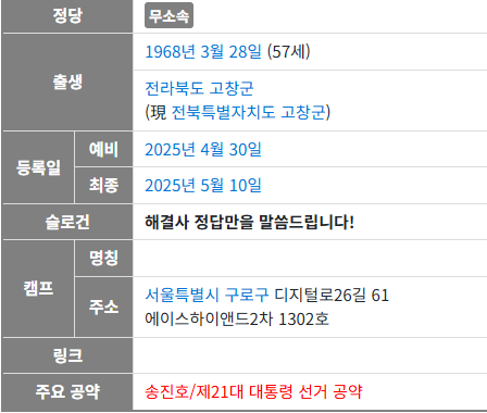 🙋‍♂️ 2. 주요 정당 및 무소속 후보자 소개