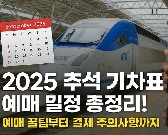 안녕하세요! 😊 다가오는 2025년 추석 열차표 예매 일정을 정리해드리겠습니다. 매년 명절이 다가오면 귀성객과 여행객들이 가장 먼저 확인하는 게 바로 기차표 예매 일정인데요. 올해도 코레일(KTX)과 SRT 모두 사전 예매가 진행됩니다. 놓치지 않도록 꼼꼼하게 확인해보세요! 👀