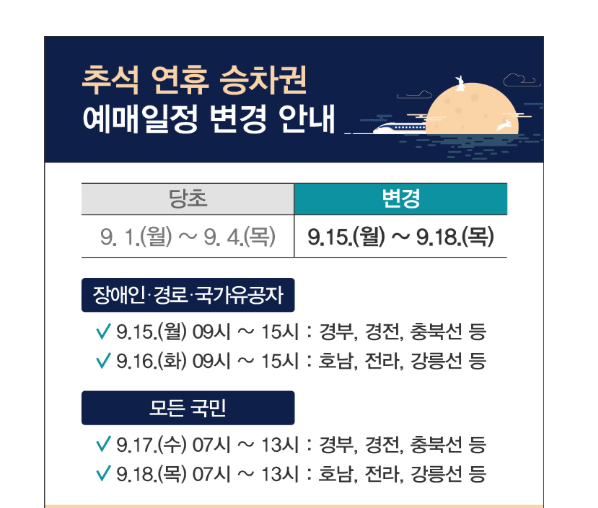 🚄 2025 추석 코레일 승차권 예매 일정 연기 안내 🎫 | 최신 소식 총정리내달 15일부터 18일까지